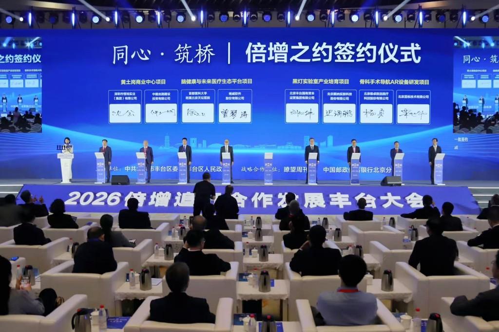 4月25日,2026倍增追赶合作发展丰台大会在北京园博园召开。本次大会以“聚力跃升,向新同行”为主题,设置三大篇章,全景回顾区域三年跨越发展历程,正式发布新一轮产业跃升发展部署。现场同步配套开展硬科技创新成果展、政策直通服务长廊、园区楼宇专场洽谈对接活动,全方位搭建高效务实的政企对接平台,精准畅通政企双向沟通渠道。