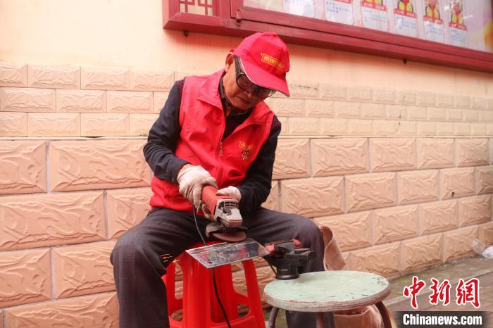 1939年出生的张志林是服务队里面最年长的志愿者。年轻时,张志林是单位修车员,有一手用手持电动砂轮磨刀的“绝活”。“以前复杂的机械都能维修,磨刀没有什么难度。”张志林表示。