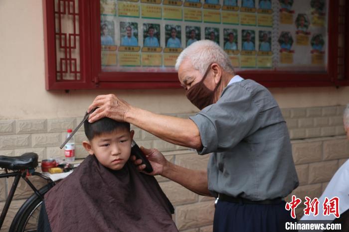 “银龄先锋”志愿者给孩子免费理发。林馨摄