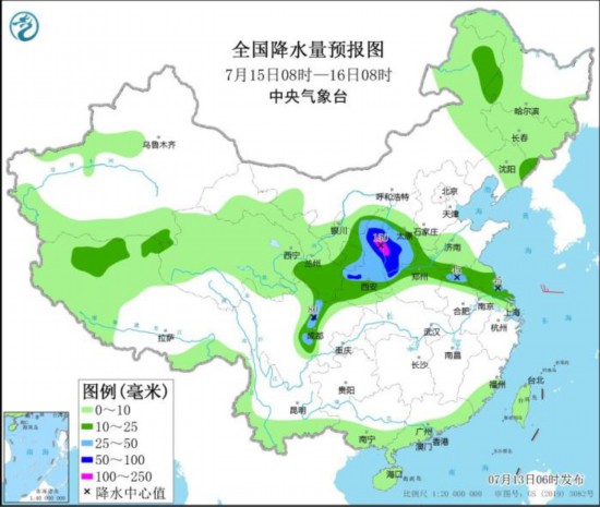 全国降水量预报图(7月15日08时-16日08时)