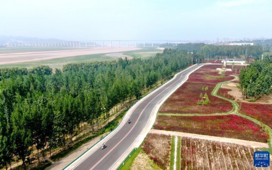 目前,黄河河南段干流右岸生态廊道已基本贯通,左岸已贯通489公里,累计完成绿化11.27万亩。俯瞰黄河生态廊道,犹如一条“绿飘带”沿黄河蜿蜒。