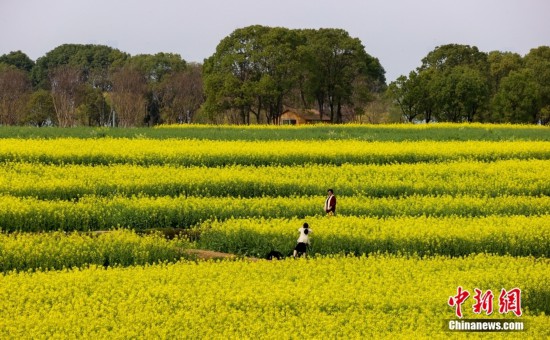 武汉油菜花次第开放 湖光山色中尽享田园野趣