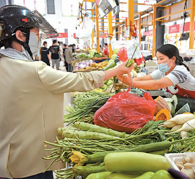 位于天津市滨海新区的中新天津生态城积极推进一刻钟便民生活圈建设,服务基本民生,畅通城市经济微循环。图为居民在中新天津生态城第三社区中心菜市场内选购食材。 |