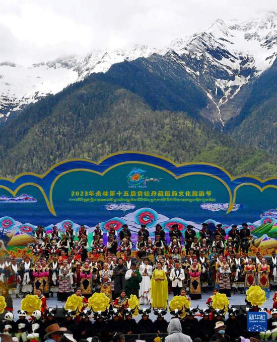 5月28日拍摄的米林市第十五届黄牡丹藏医药文化旅游节开幕式现场。