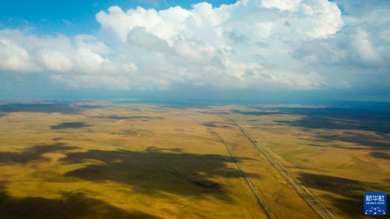 这是5月30日拍摄的内蒙古锡林郭勒盟苏尼特右旗境内的草原风光。