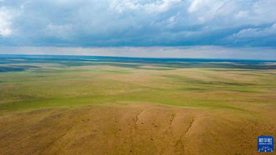 这是5月30日拍摄的内蒙古锡林郭勒盟苏尼特右旗境内的草原风光(无人机照片)。