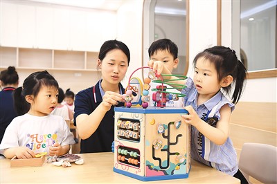 “我和爱人都在企业上班,平时工作很忙,岳父母上了年纪,照顾孩子实在力不从心。”这两年,育儿难题严重困扰着家住浙江省宁波市北仑区的余先生。直到他将一对龙凤胎儿女送到了家门口开设的一家托育园,问题才迎刃而解。