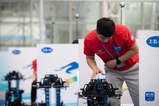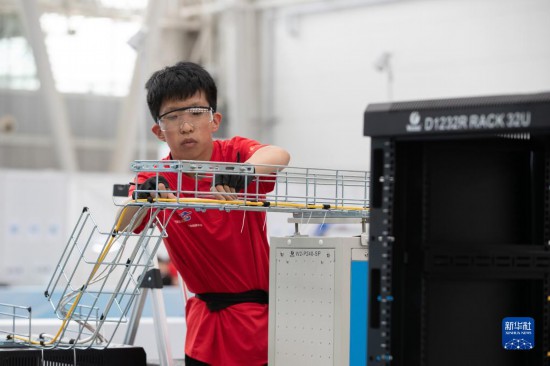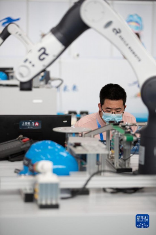 6月6日,选手在进行工业机器人系统操作员项目比赛。