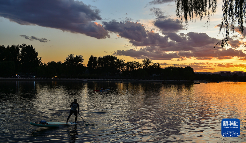 2023年6月10日,夕阳下的什刹海。新华社记者 陈钟昊 摄