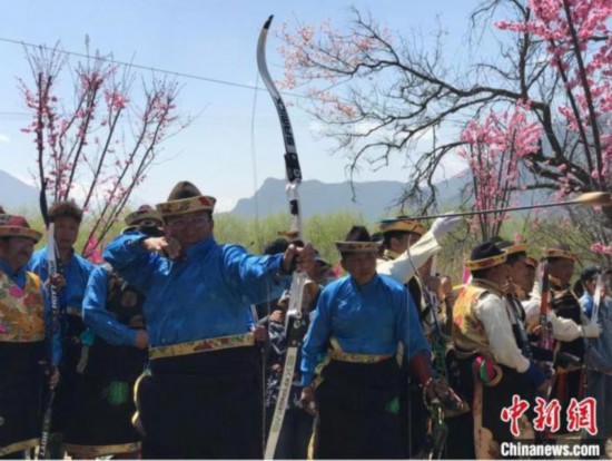 资料图:桃花节上的工布响箭比赛吸引了众多游客观看。冉文娟 摄