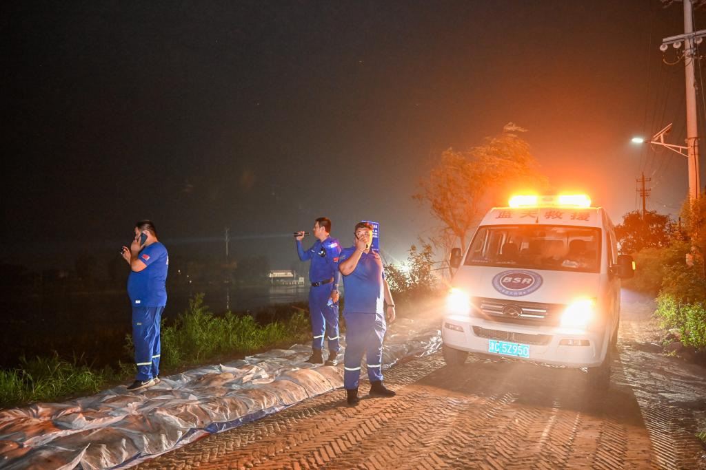 在台头镇民生村村民转移后,村民于金虎留了下来,作为志愿者加入巡查队伍。7日晚间,记者跟随他一起巡村。于金虎说,除了要时刻关注洪水,还要注意持续降雨造成的村里内涝,“村里配备了专人负责排涝”。