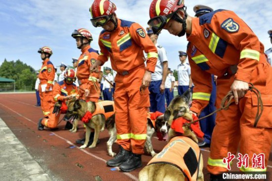 成都消防4只搜救犬退役仪式现场。中新网记者 刘忠俊 摄