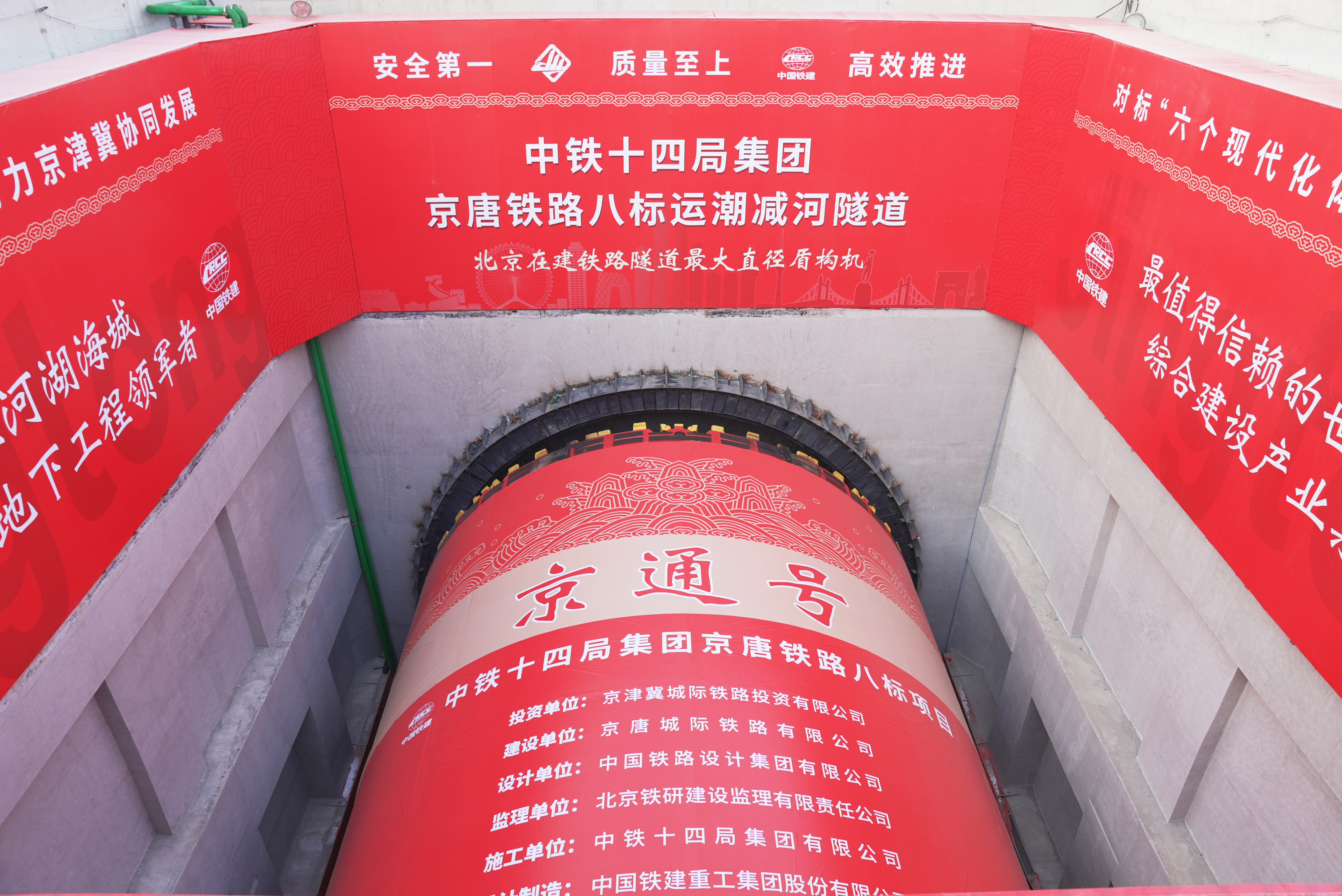 施工单位中铁十四局项目负责人表示,运潮减河隧道是京唐城际铁路全线贯通的最后一条隧道,也是北京城市副中心地区的首条高铁大直径盾构隧道。“京通号”盾构机将在覆土8.8米的超浅埋地层始发,向西依次穿越通胡大街、运潮减河等风险源,在北京城市副中心站接收。