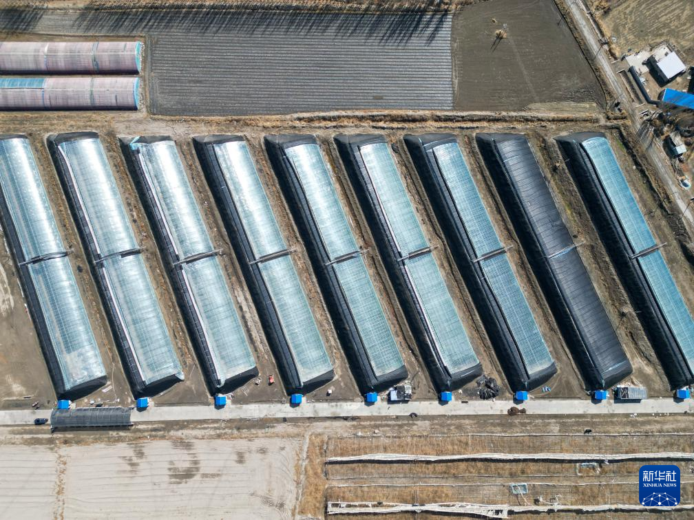 这是3月24日拍摄的本布图镇再格森诺尔村现代设施农业示范基地大棚(无人机照片)。