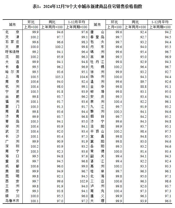 2024年12月房价数据公布 一线城市“止跌回稳”信号明确