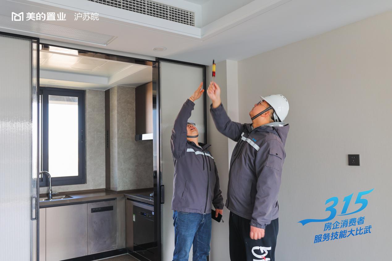 “基层干燥无浮尘、无开裂,管道根部基层补强,点位没有开槽。”“轻钢龙骨搭设满足美标要求,无松动、无锈蚀。”在无锡美的云开东方开展的交付品控技能大比武赛事现场同样精彩,12个城市的参赛队伍在规定时间内根据集团交付评估规则完成现场巡查、PPT总结汇报,让更多消费者看到了美的置业对交付品控的严格标准。