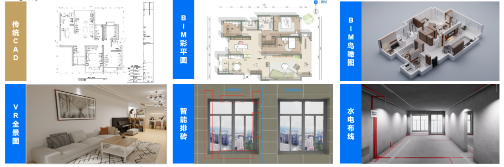 家装BIM则是用数字技术把家装工程“搬”到电脑上,建成3D模型,从生成户型、拆改、平面布局、快速换搭、智能铺贴、生成龙骨、自动布线到精准算量,BIM确保装修信息准确无误。相较传统CAD图纸,BIM可生成可交互的三维模型,一键生彩平图、鸟瞰图、白模图、VR全景图、渲染图。目前已覆盖应用每年10万+的整装订单,有效提升设计时效,降低材料耗损率。