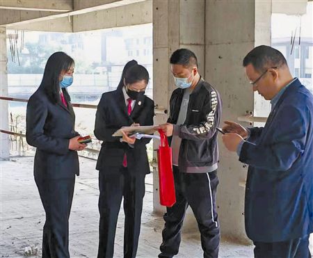 图⑤:芜湖中院执行干警深入工地,对三起涉民营企业案件进行调查。