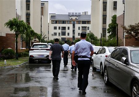 图④:暴雨过后,执行干警到小区里拘传被执行人。