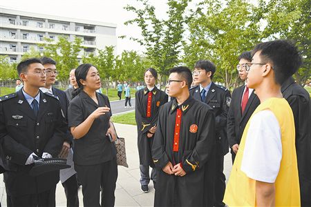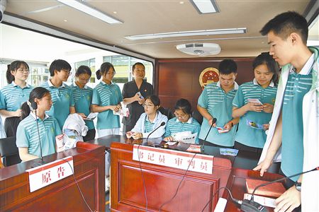 随着“审判长”敲响法槌,以未成年被告人习某航故意伤害案为蓝本的模拟法庭宣布开庭。庭审中,“书记员”宣布法庭纪律,“公诉人”宣读起诉书,“被告人”答辩,法庭调查、法庭辩论、法庭教育及当庭“宣判”等程序有序进行。
