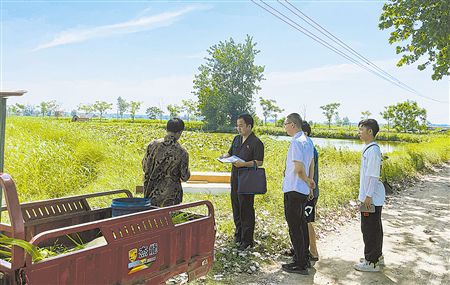 受理案件后,法官迅速到藕塘进行现场勘验,并组织双方开展诉前调解。调解现场,法官采用“背对背”调解方式,分头做双方工作,最终促成双方达成一致意见。图为7月18日,法官向双方送达调解书。