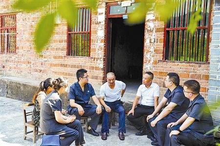 图①:法官、人大代表在王某家的院坝里拉家常、讲法律。