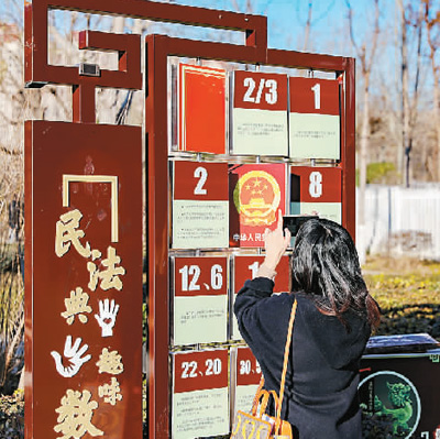 “我们依托海河故道公园打造了民法典长廊,将众多法治文化元素点缀其中,营造出浓厚的法治氛围。”天津市津南区人民法院党组书记、院长刘振清介绍,长廊分为12个篇章,涵盖114个民法典知识点、近60个与群众生活息息相关的典型案例,还设置了模拟法庭、扫码视听等供市民互动体验。