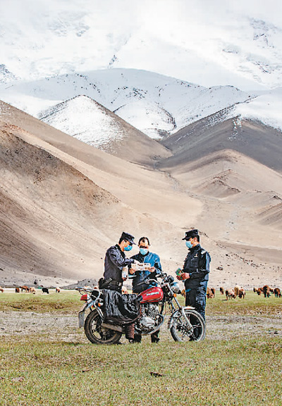 新疆出入境边防检查总站克孜勒苏柯尔克孜自治州边境管理支队苏巴什边境派出所的民警向放牧群众宣讲野生动物保护法。 |