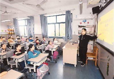 浙江省湖州市吴兴区飞英街道竹翠园社区驻点律师在湖州市月河小学进行法治宣讲。 |