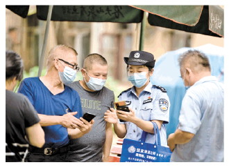 图② 李蓓向社区居民推介国家反诈App。