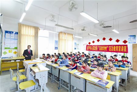2月7日,广西壮族自治区桂平市人民法院“法润浔州”普法团队到大湾镇中心小学、大湾镇硬塘村小学开展“开学第一堂法治课”普法进校园活动,通过问答互动和分组讨论,向学生介绍未成年人保护法、道路交通安全法等法律知识,引导同学们自觉远离犯罪行为,做明事理、辨是非的青少年。图为普法团队为学生授课现场。