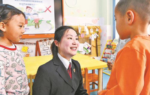 近日,天津市津南区检察院干警走进辖区幼儿园,通过播放动画片、讲法治小故事、互动问答等形式,结合孩子们的日常生活讲述安全知识,增强孩子们的自我保护意识。 本报通讯员方言 张昀摄