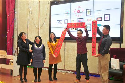 厦门海事法院干警在新春茶话会上自编自演廉政小品。