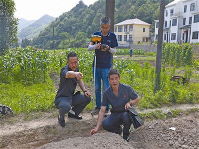 图①:法官与技术人员在现场丈量土地。
