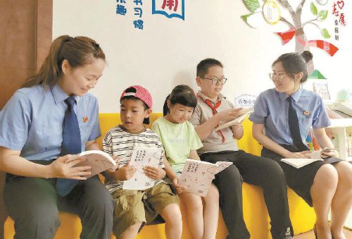 近日,江苏省镇江市润州区检察院以践行“护航现代化 建功新征程”讲百案、进千企、访万家法治宣传行动为契机,走进金山街道迎江路中心社区开展“甜蜜一夏·爱心守护”系列法治宣传活动。活动现场,检察官与3位小朋友以交流暑假生活安排为开场,穿插互动游戏来拉近彼此距离,通过案例解析、讨论预防方法、阅读思考等对教材《未成年人不良行为自我预防》内容进行讲授,帮助孩子们培养正确的人生观、价值观和世界观。