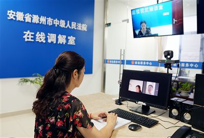 滁州中院人民调解员在线调解纠纷。商 仑 摄
