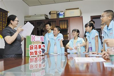 近日,由广东省佛山市高明区人民法院主办、高明区关心下一代工作委员会协办的2023年法治夏令营活动正式拉开帷幕,区内110名青少年学生利用暑假参加本次活动。学生通过参加法治互动小游戏、观看庭审等活动,听法官以案说法,在亲身体验中接受法治熏陶,了解法院工作,树立法治信仰。图为学生们在高明区法院民二庭参与问答闯关游戏,了解民法典相关知识。