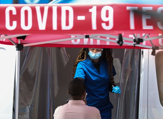 5月17日,一名男子在美国纽约时报广场接受新冠病毒检测。新华社记者王迎摄