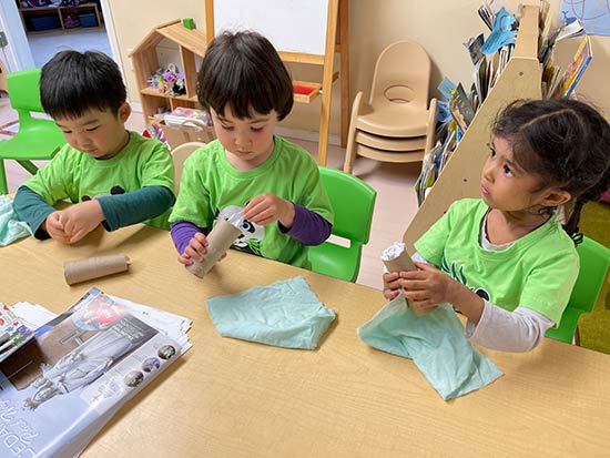 小朋友跟着福建大师学习用回收材料做木偶。吴筱洁 摄(活动主办方供图)