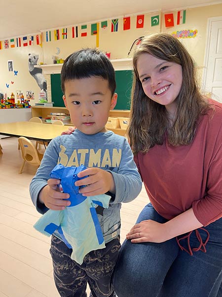 来自中国福建的木偶大师和美国的小朋友们线上互动热烈。福建的艺术家带着美国的师生家长云逛漳州木偶艺术展示馆,向他们介绍中国传统戏剧角色,展示化腐朽为神奇的木偶制作过程。看到一块木头从打坯、粗坯处理、细刻、磨光、盖泥、修饰、粉彩到成“人”,现场发出阵阵惊叹。美国小朋友不但跟随福建的木偶大师线上学习用回收材料做木偶,还跟随练习操纵木偶的基本功动作。