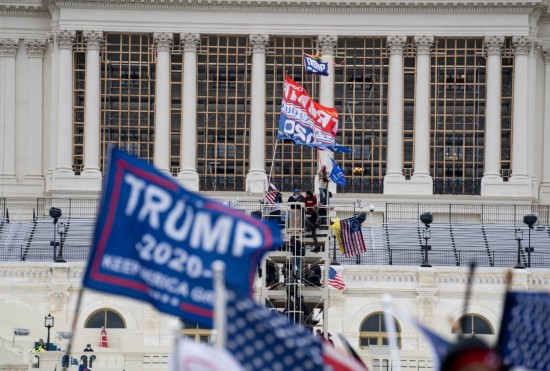 2021年1月6日,在美国首都华盛顿,时任美国总统特朗普的支持者举行示威游行。新华社记者刘杰摄