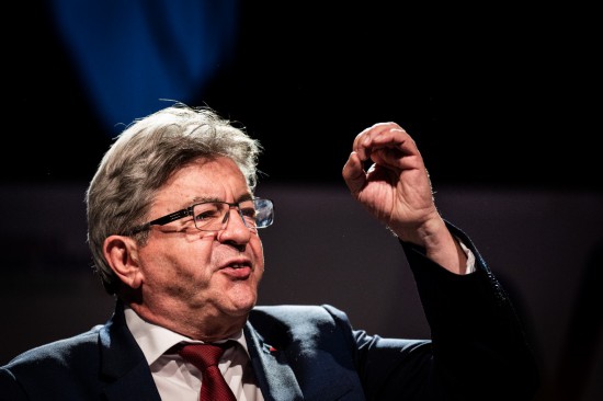 6月19日,法国极左翼政党“不屈法国”领导人梅朗雄在巴黎举行的选后集会上讲话。新华社发(何塞·博萨斯摄)