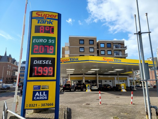 这是4月2日在荷兰海牙市一处加油站拍摄的油价显示牌。新华社记者王湘江摄