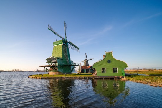 这是3月26日在荷兰赞丹拍摄的桑斯安斯“风车村”景色。新华社记者张铖摄