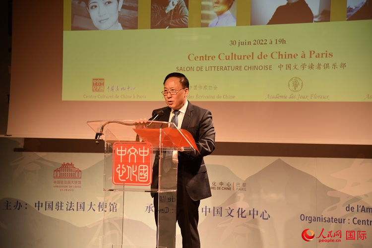 人民网巴黎6月30日电 (记者刘玲玲)由中国作家协会支持,法国中国文学读者俱乐部与巴黎中国文化中心联合举办的“2022中国当代诗歌朗诵会”当地时间30日晚在法国巴黎中国文化中心成功举办。中国驻法国大使卢沙野出席活动。来自中法文学艺术界人士及法国文学和中国文化爱好者等近200名嘉宾参加了活动。