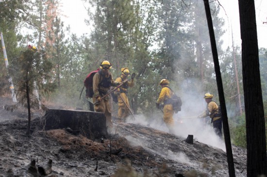 7月25日,消防员在美国加利福尼亚州马里波萨县参与灭火。新华社发(李建国摄)