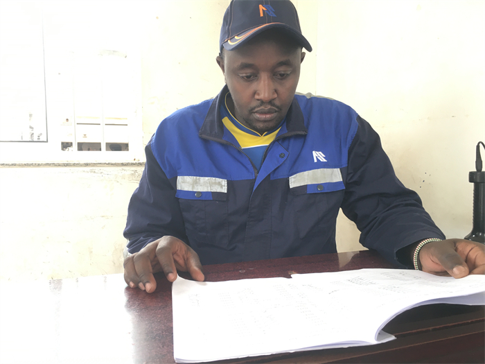 皮顿·恩霍洛日在检查运转车间班组台账内业。非洲之星铁路运营公司供图