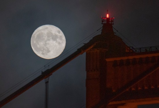 这是7月13日在美国旧金山金门大桥附近拍摄的“超级月亮”。新华社发(李建国摄)
