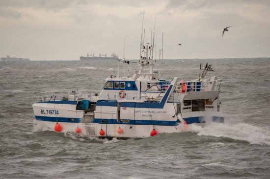 这是2021年11月26日在法国加来港拍摄的法国渔船。新华社发