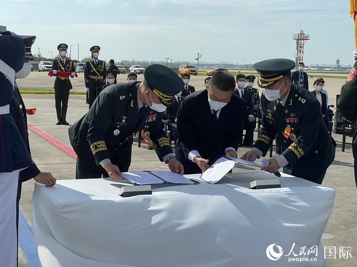 中韩双方代表现场签署交接书。人民网记者 张悦摄